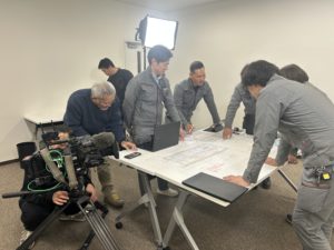 また社内では、図面を操作している場面や施工検討会の様子など、