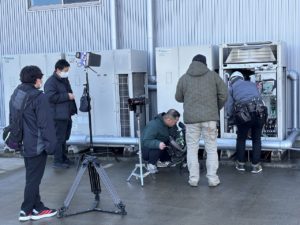 撮影当日は、お客様の工場にて、空調機の取付提案の様子や