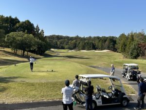 の中でプレーを楽しみました。天候にも恵まれコースを回りながら交流を深める